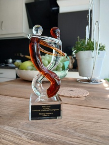 Namens onze Stichting Oktober 44 mochten we een symbolisch gebaar maken. Een geschenk in de vorm van twee mensen, die elkaar omarmen. Om maar aan te geven hoe belangrijk het is om niet te vergeten, maar wel te vergeven, wat er 81 jaar geleden gebeurd is in Putten.